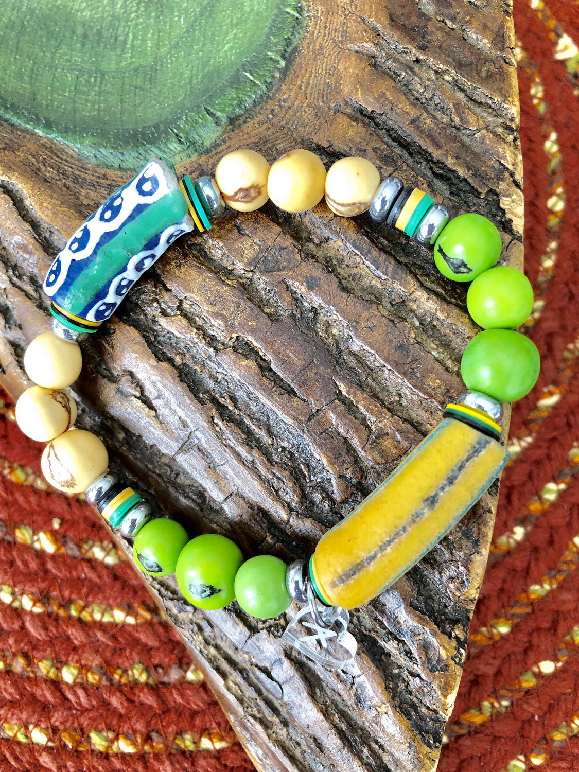 Handmade bracelets with a combination of stones and metals that form unique pieces.