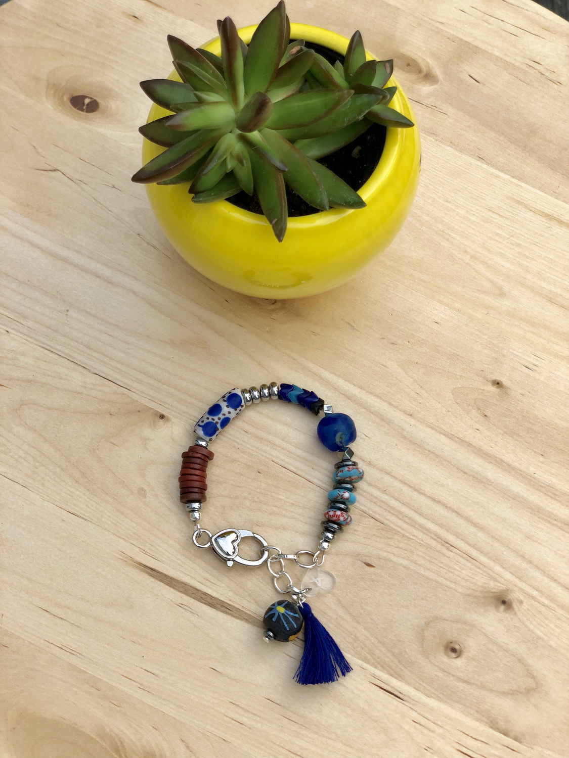Handmade bracelets with a combination of stones and metals that form unique pieces.