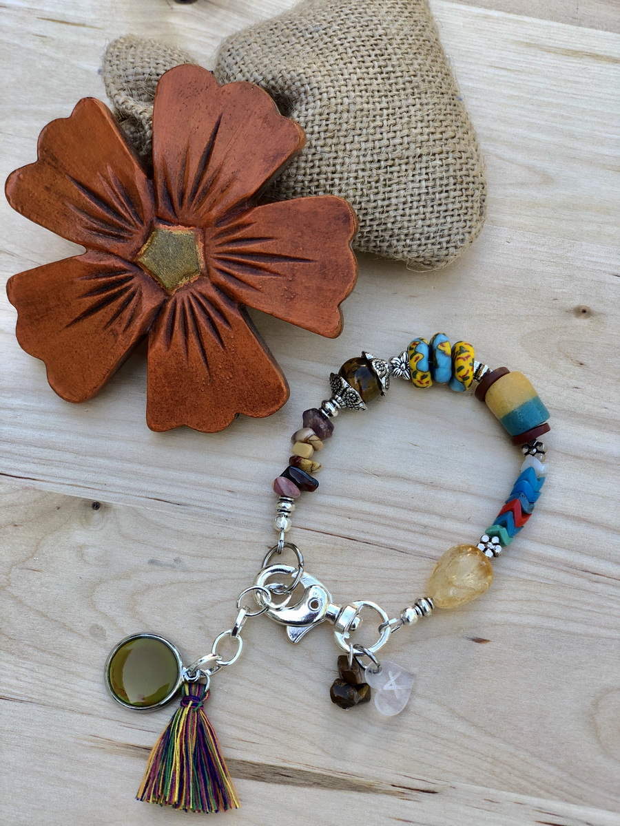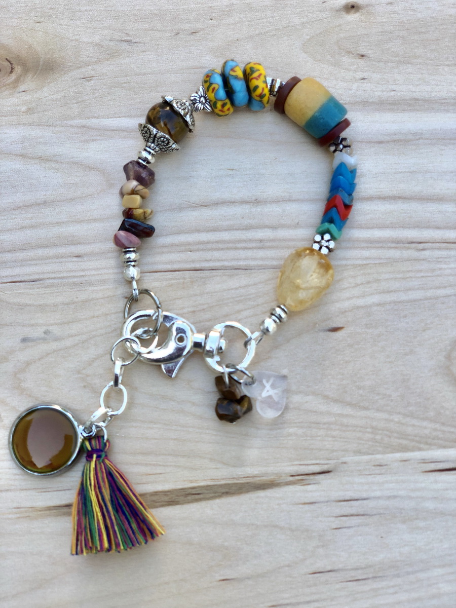 Handmade bracelets with a combination of stones and metals that form unique pieces.