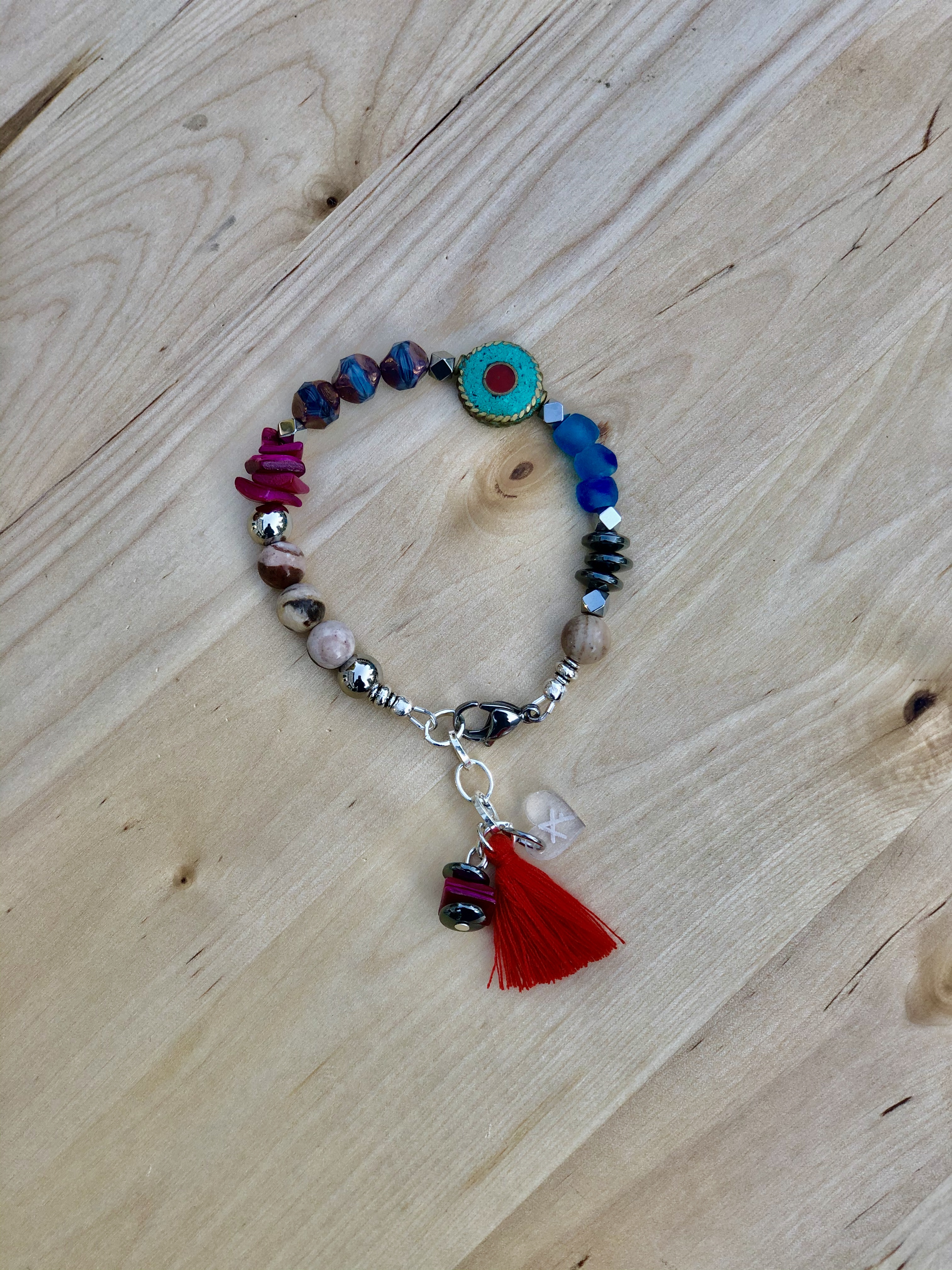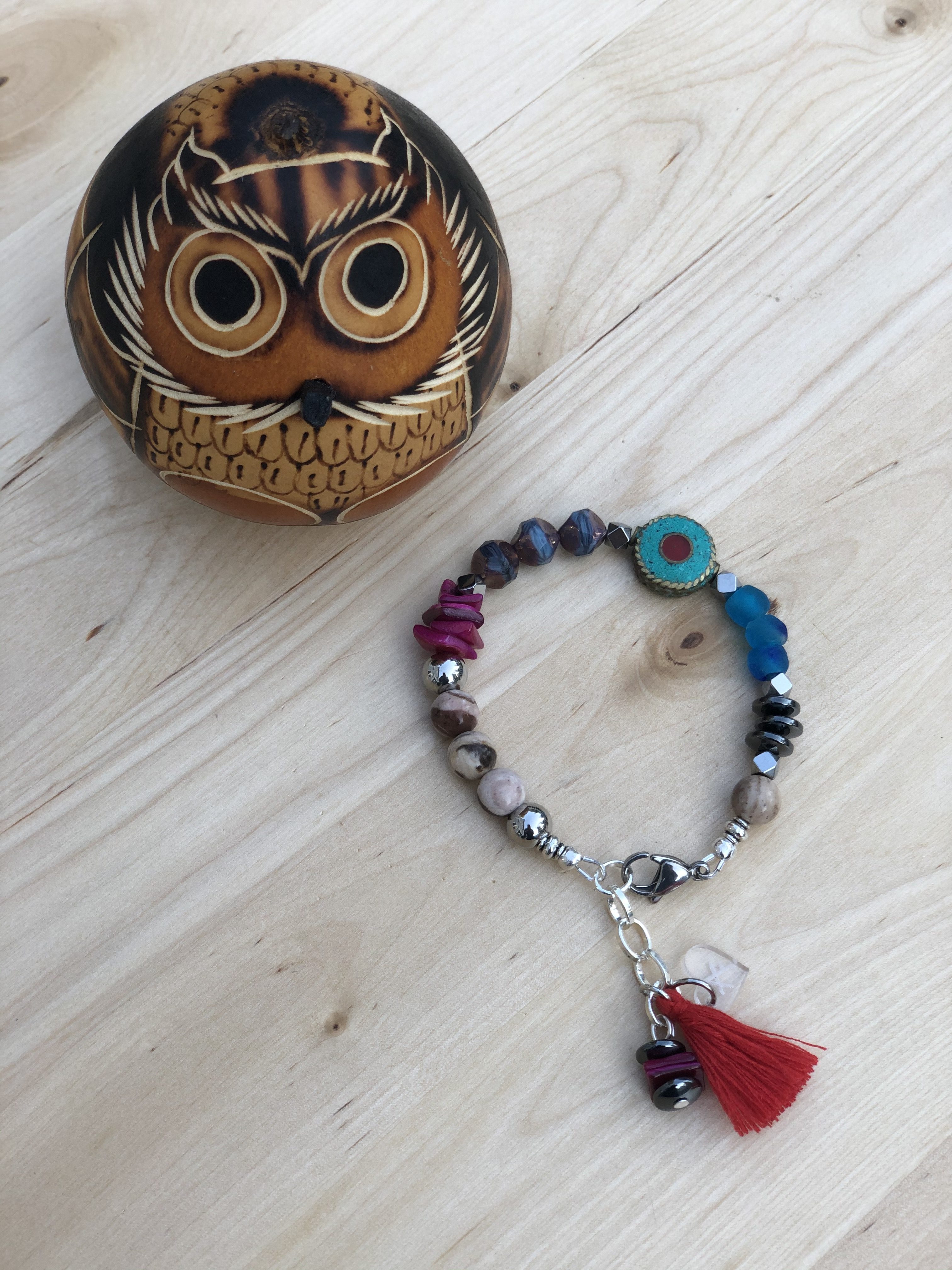 Handmade bracelets with a combination of stones and metals that form unique pieces.