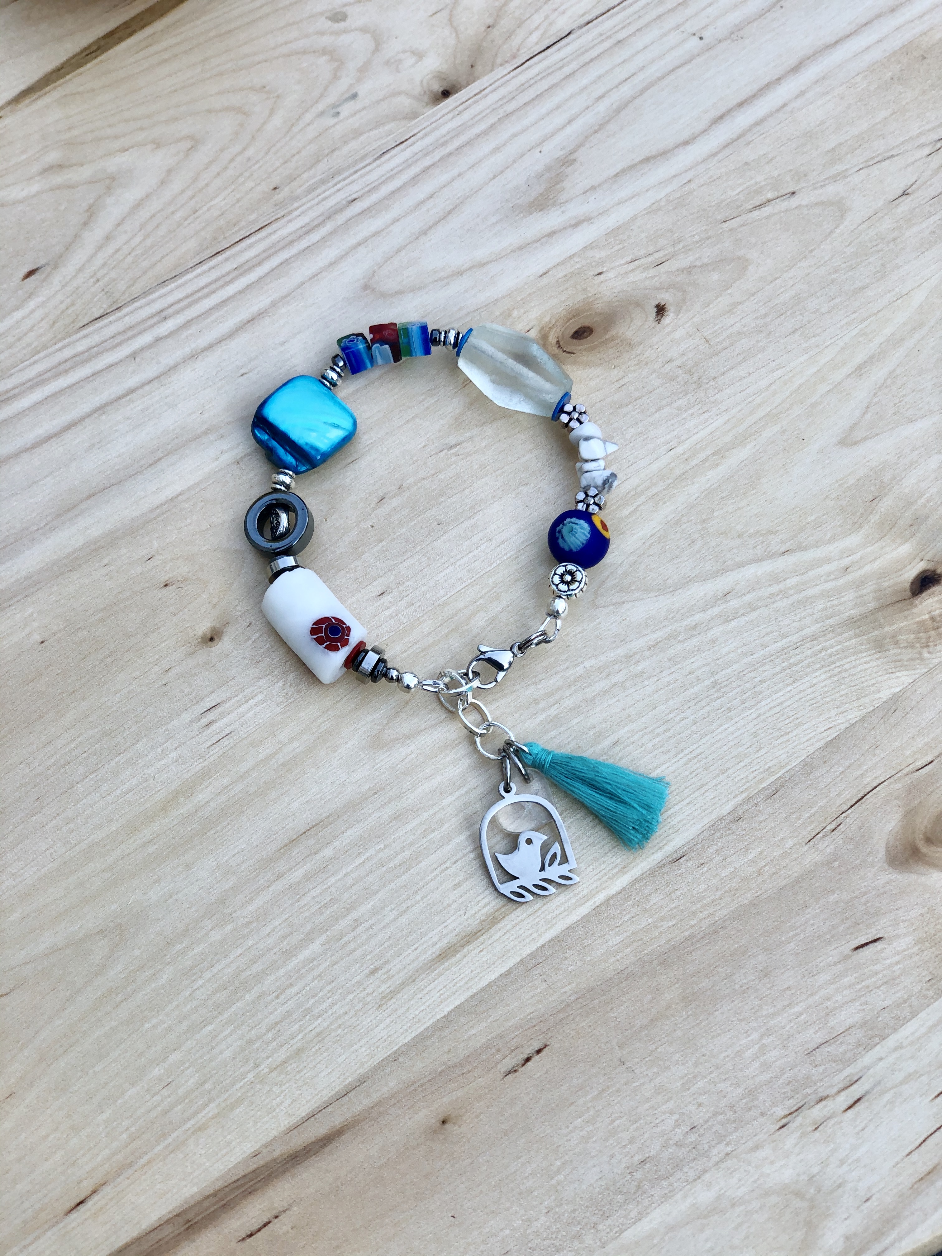 Handmade bracelets with a combination of stones and metals that form unique pieces.
