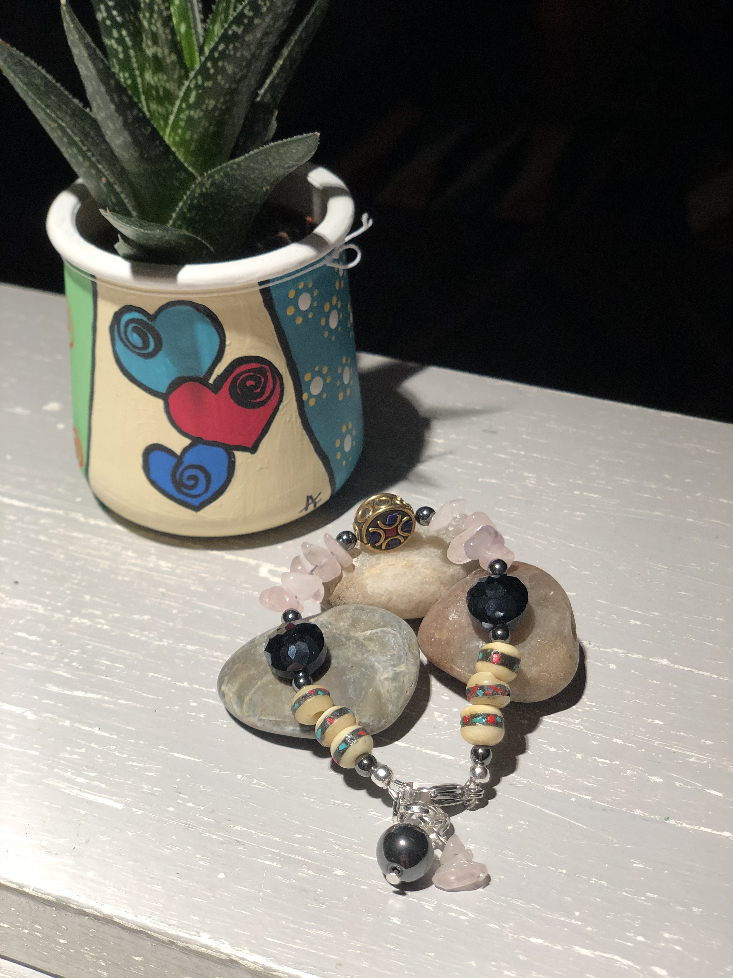Handmade bracelets with a combination of stones and metals that form unique pieces.