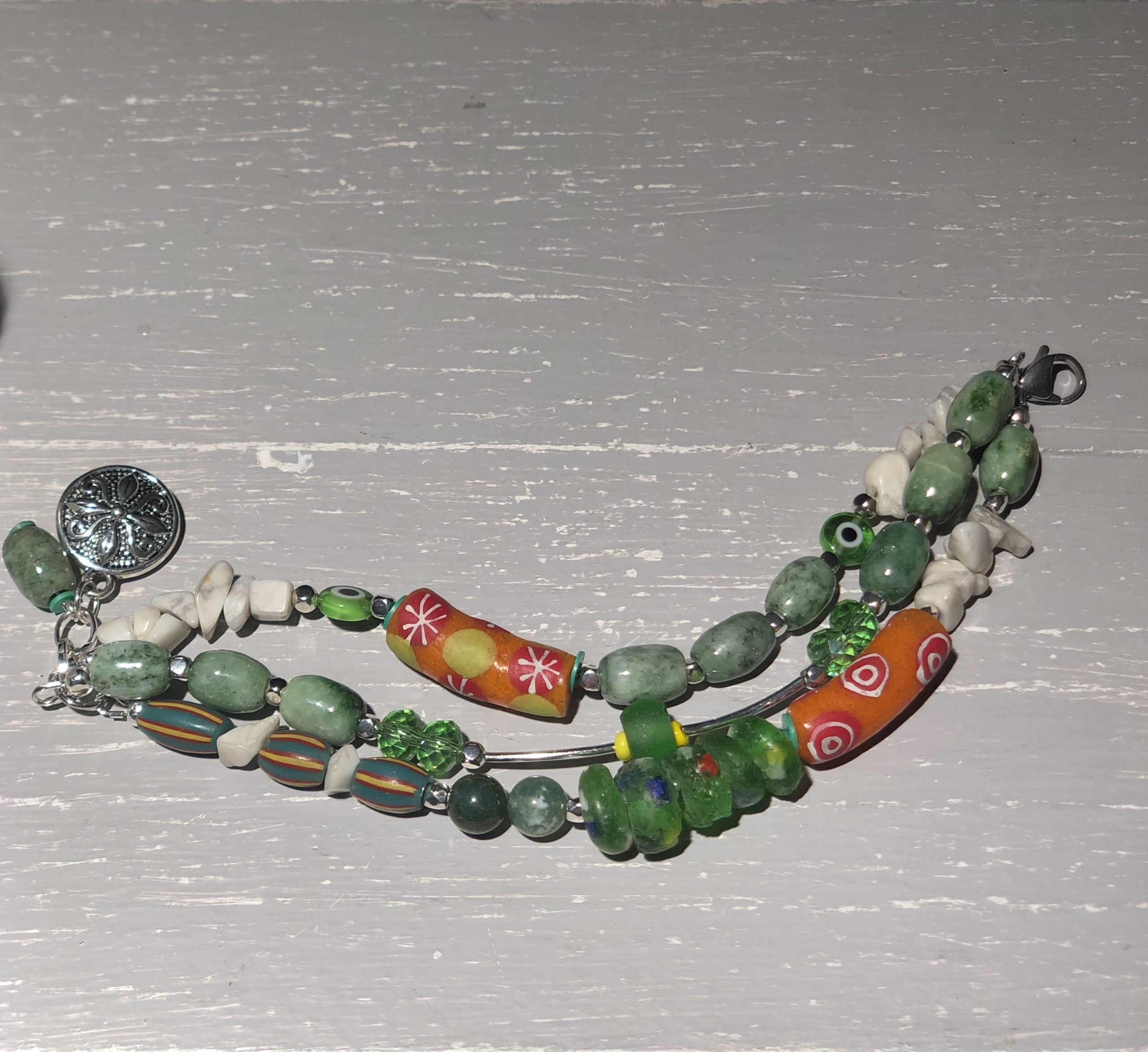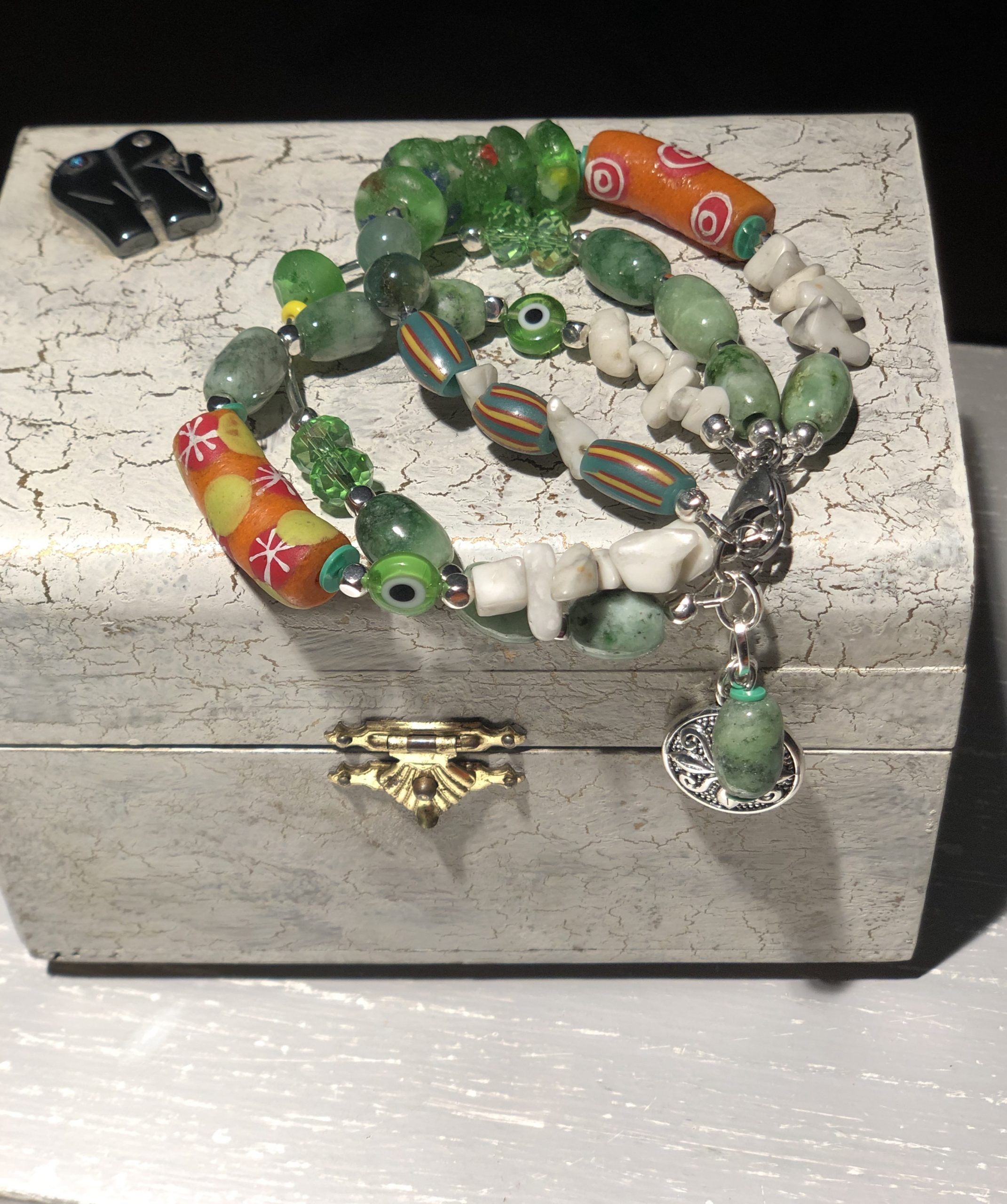 Handmade bracelets with a combination of stones and metals that form unique pieces.