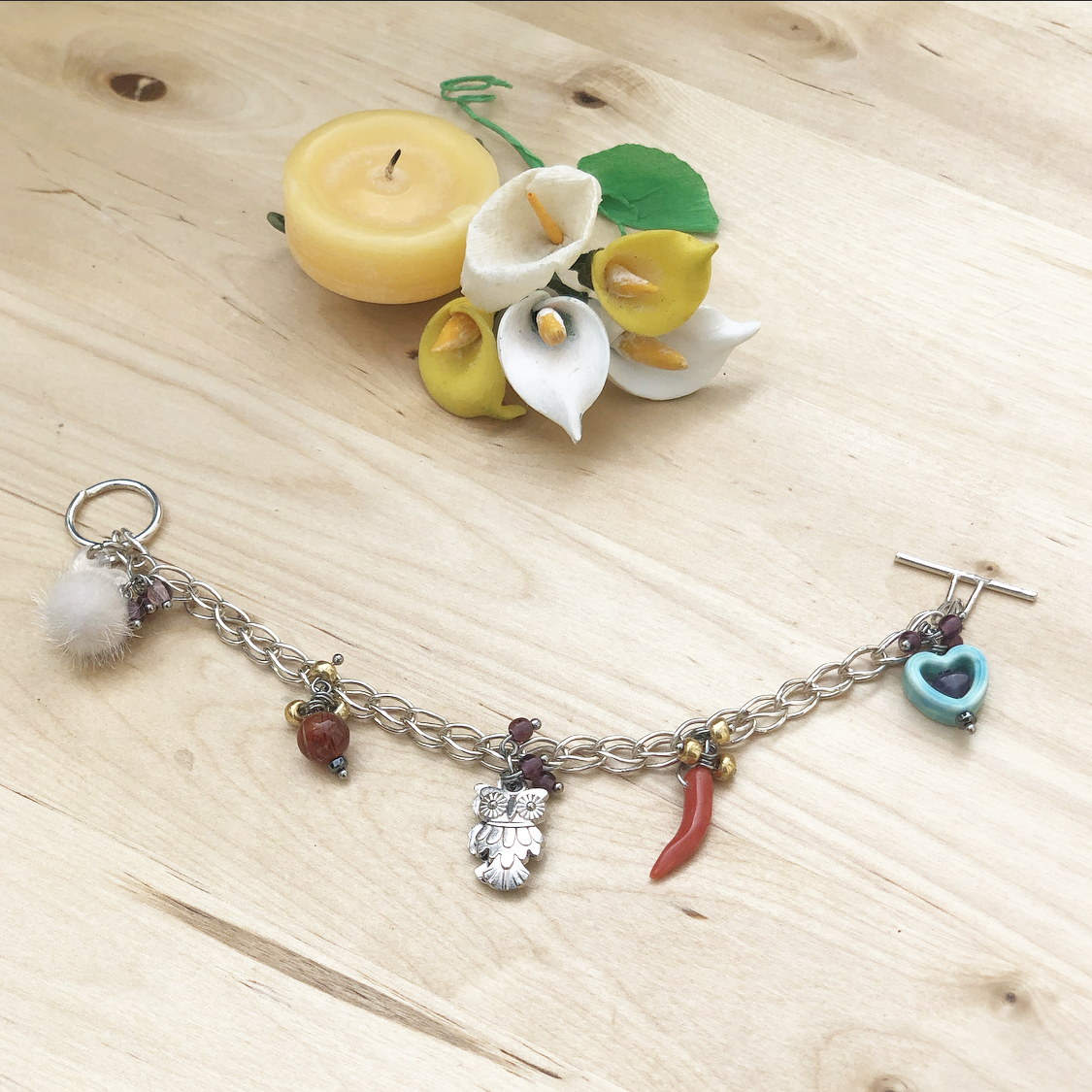 Handmade bracelets with a combination of stones and metals that form unique pieces.