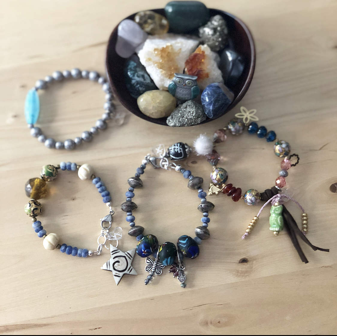 Handmade bracelets with a combination of stones and metals that form unique pieces.
