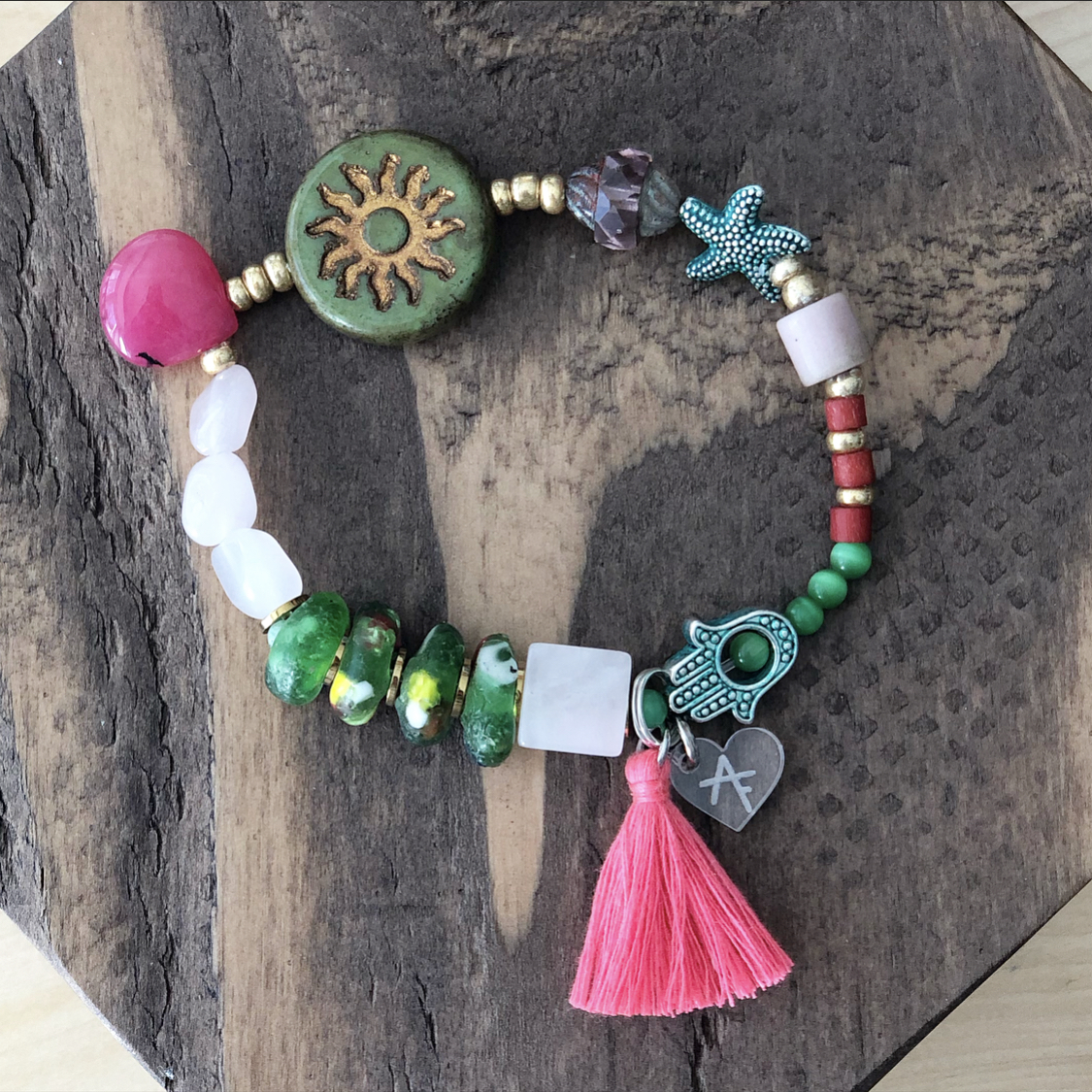 Handmade bracelets with a combination of stones and metals that form unique pieces.