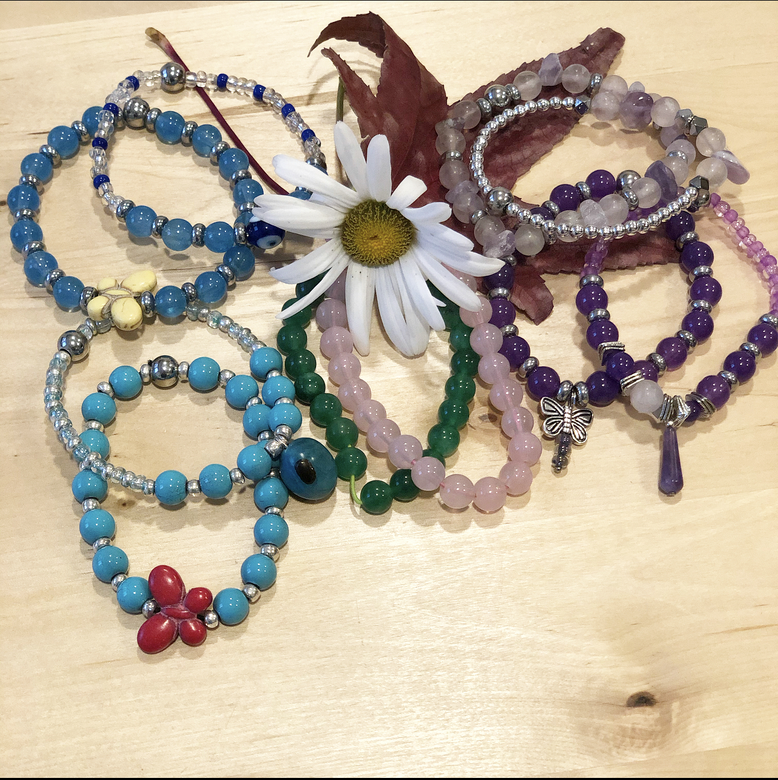 Handmade bracelets with a combination of stones and metals that form unique pieces.