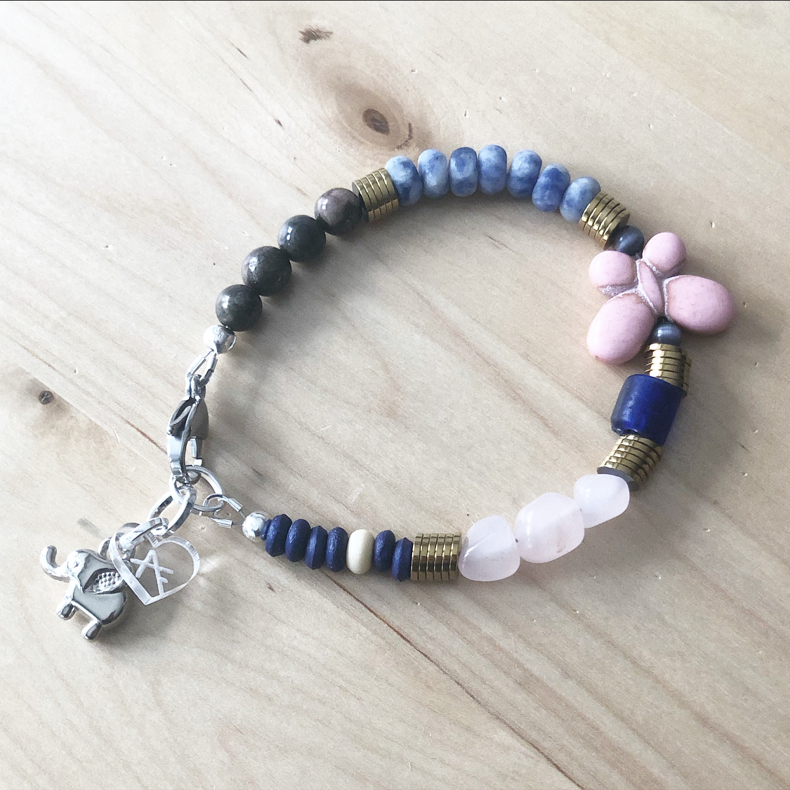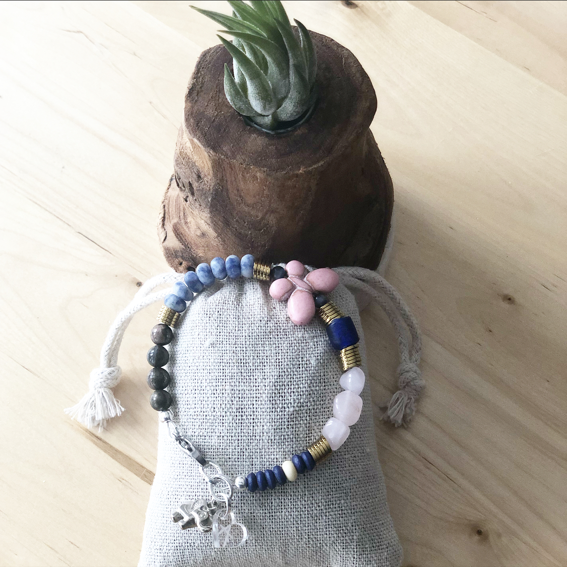 Handmade bracelets with a combination of stones and metals that form unique pieces.