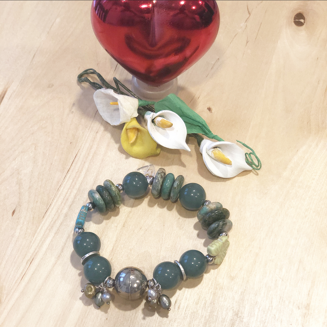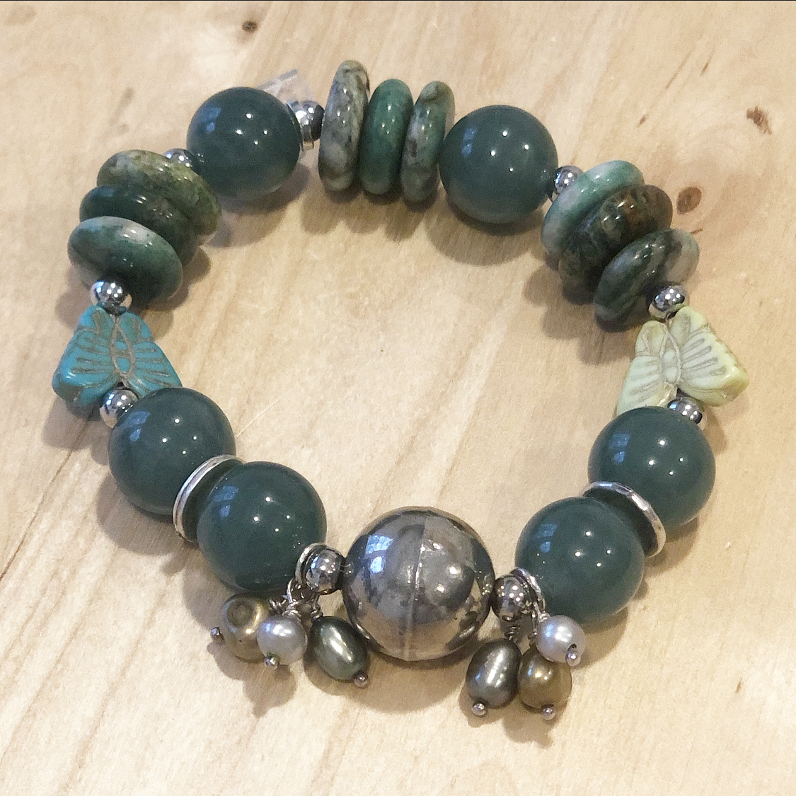 Handmade bracelets with a combination of stones and metals that form unique pieces.
