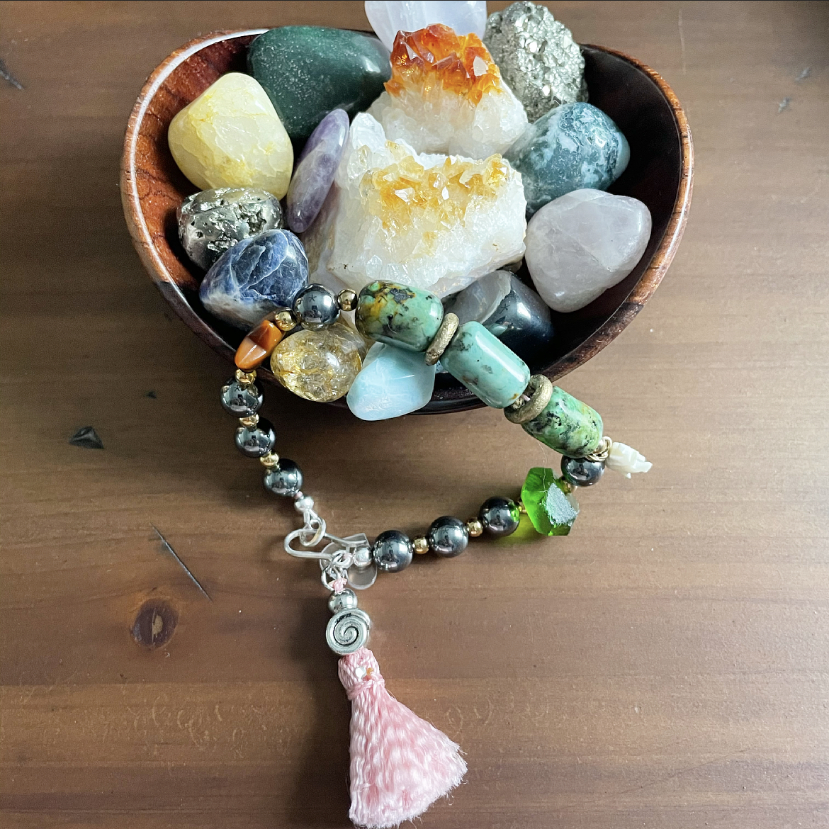 Handmade bracelets with a combination of stones and metals that form unique pieces.