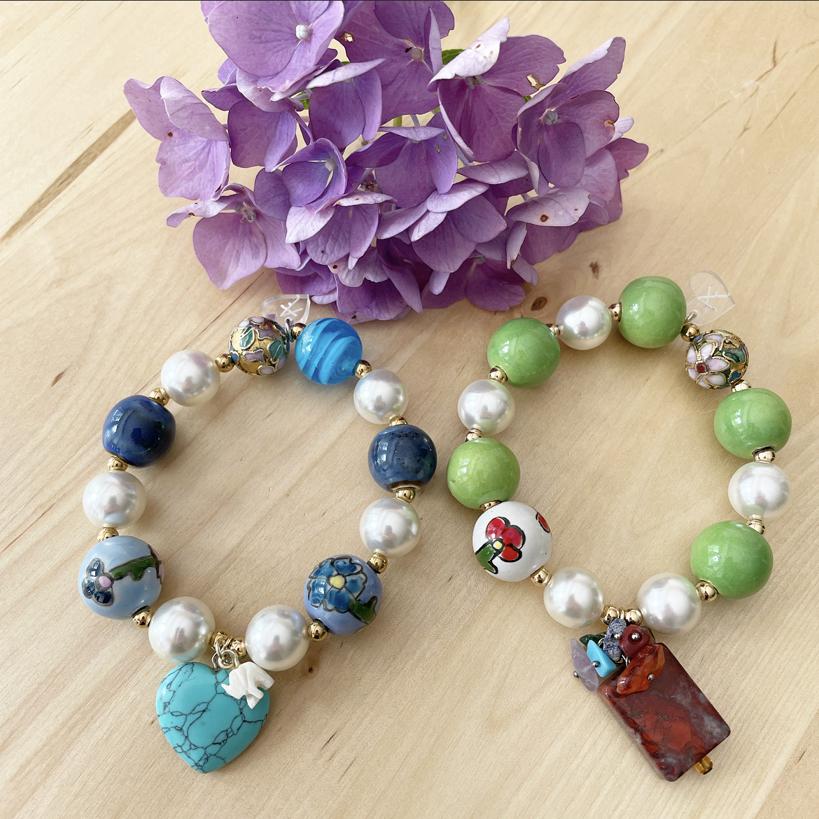 Handmade bracelets with a combination of stones and metals that form unique pieces.