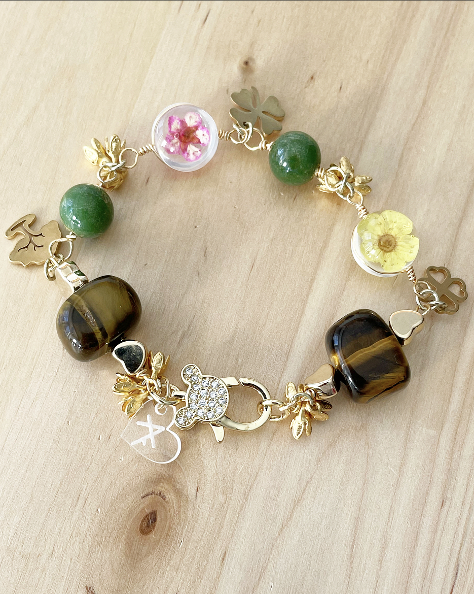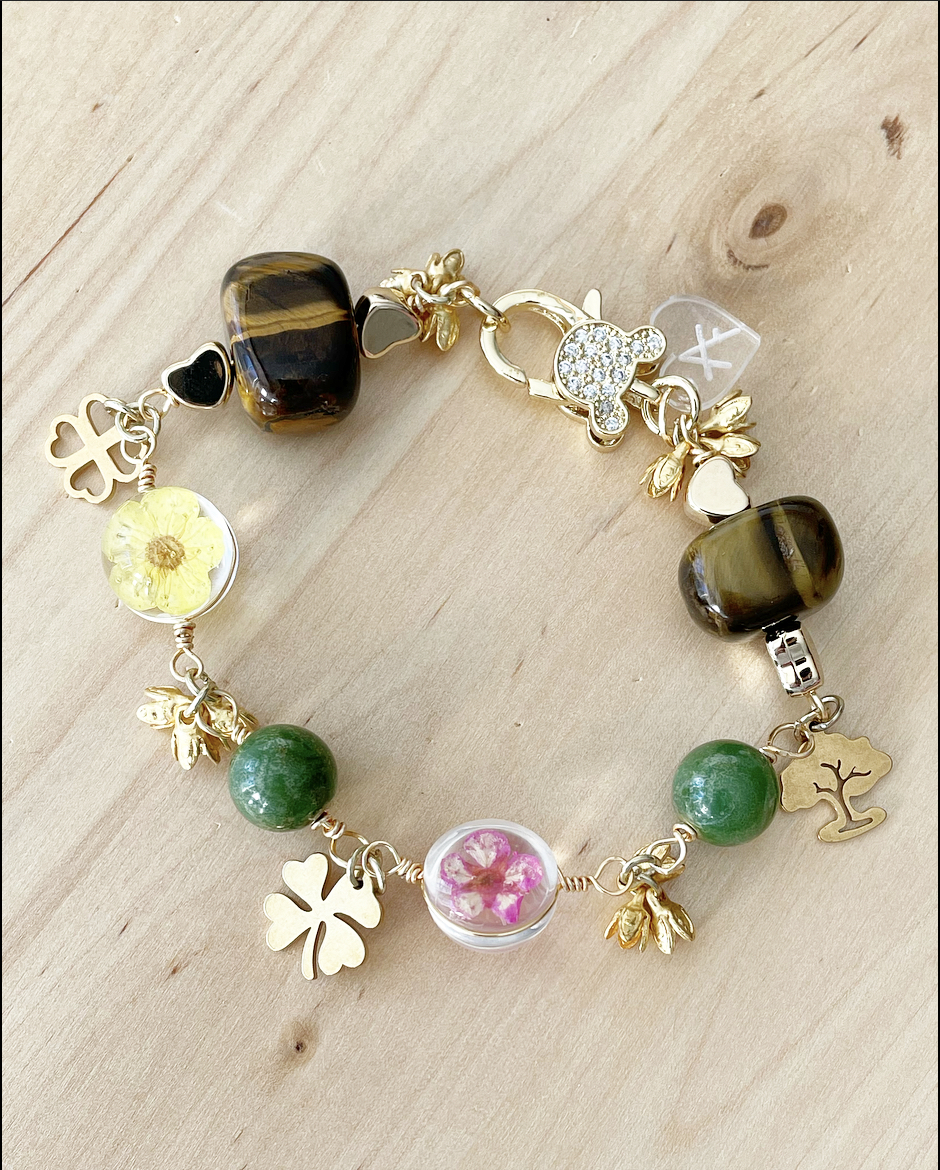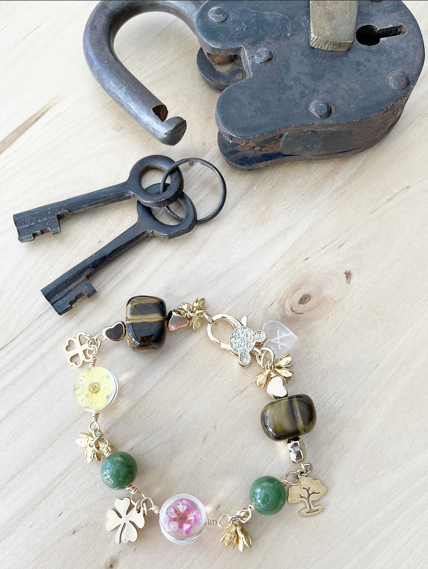 Handmade bracelets with a combination of stones and metals that form unique pieces.