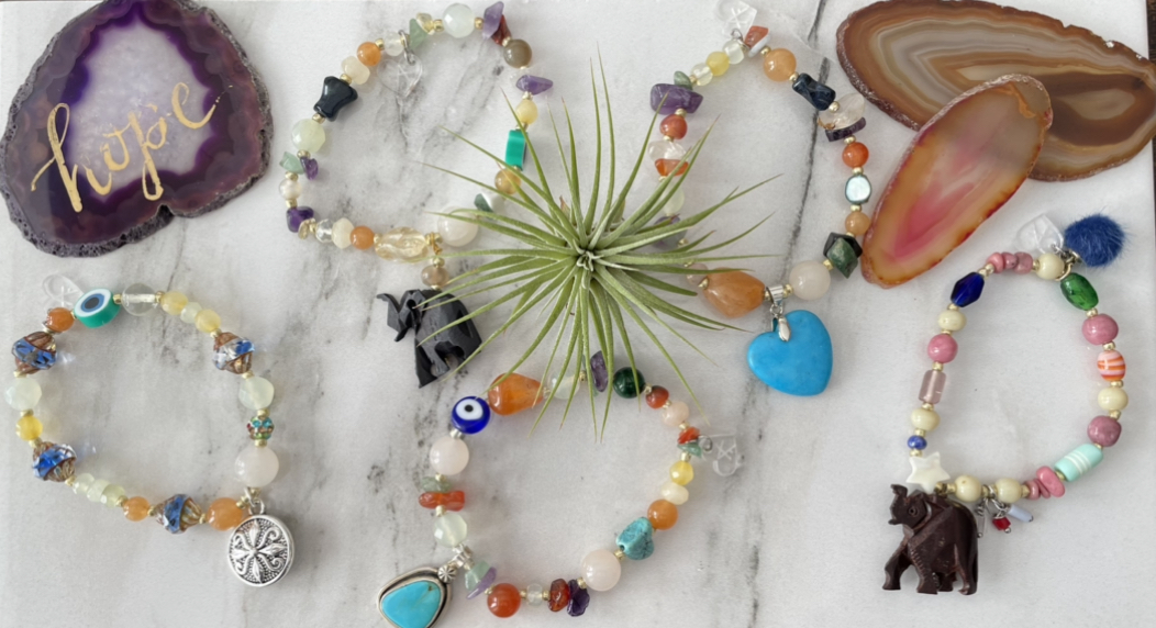 Handmade bracelets with a combination of stones and metals that form unique pieces.