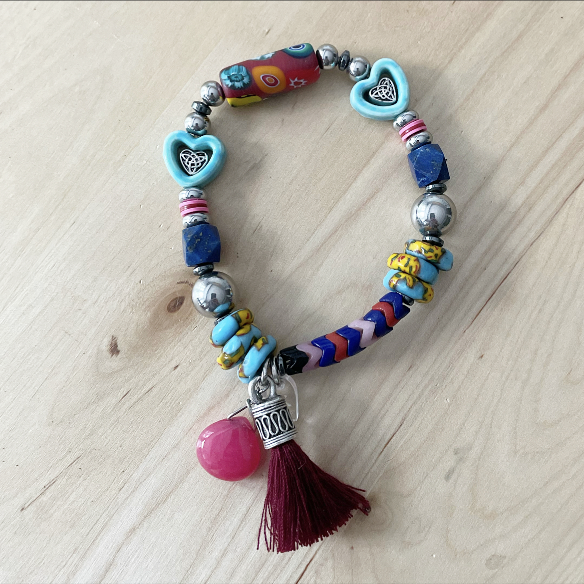 Handmade bracelets with a combination of stones and metals that form unique pieces.