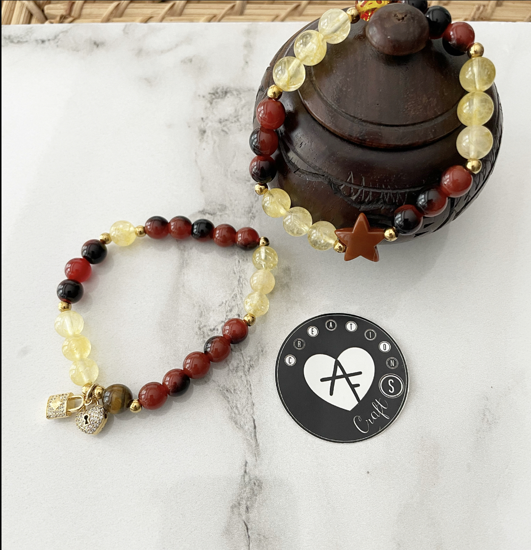 Handmade bracelets with a combination of stones and metals that form unique pieces.