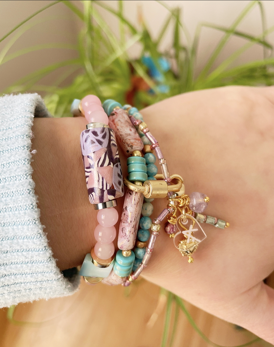 Handmade bracelets with a combination of stones and metals that form unique pieces.