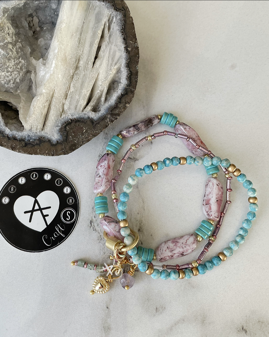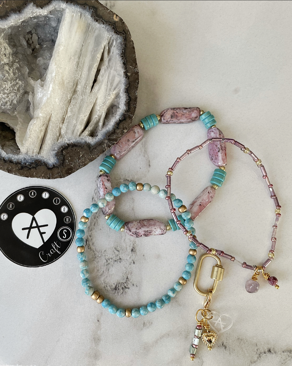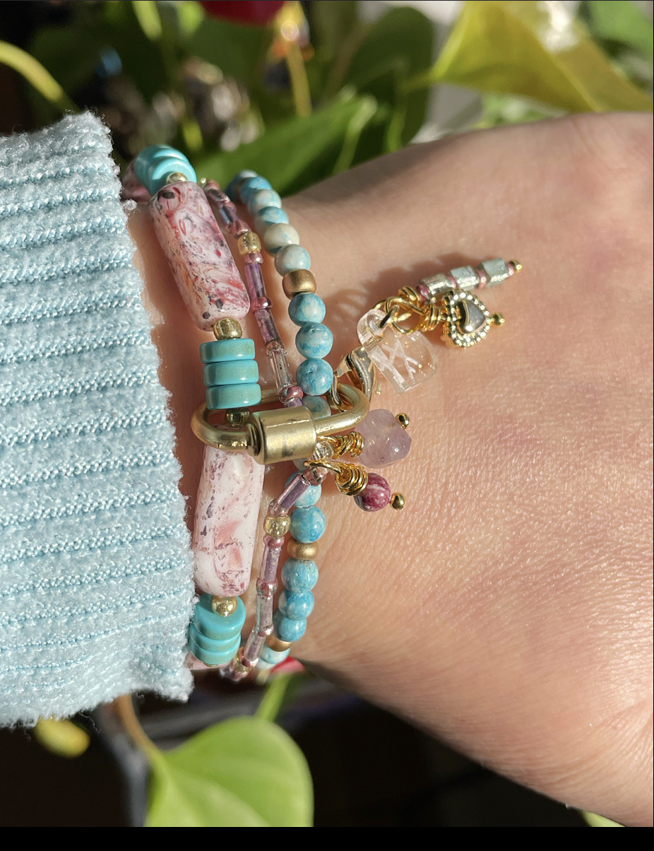Handmade bracelets with a combination of stones and metals that form unique pieces.