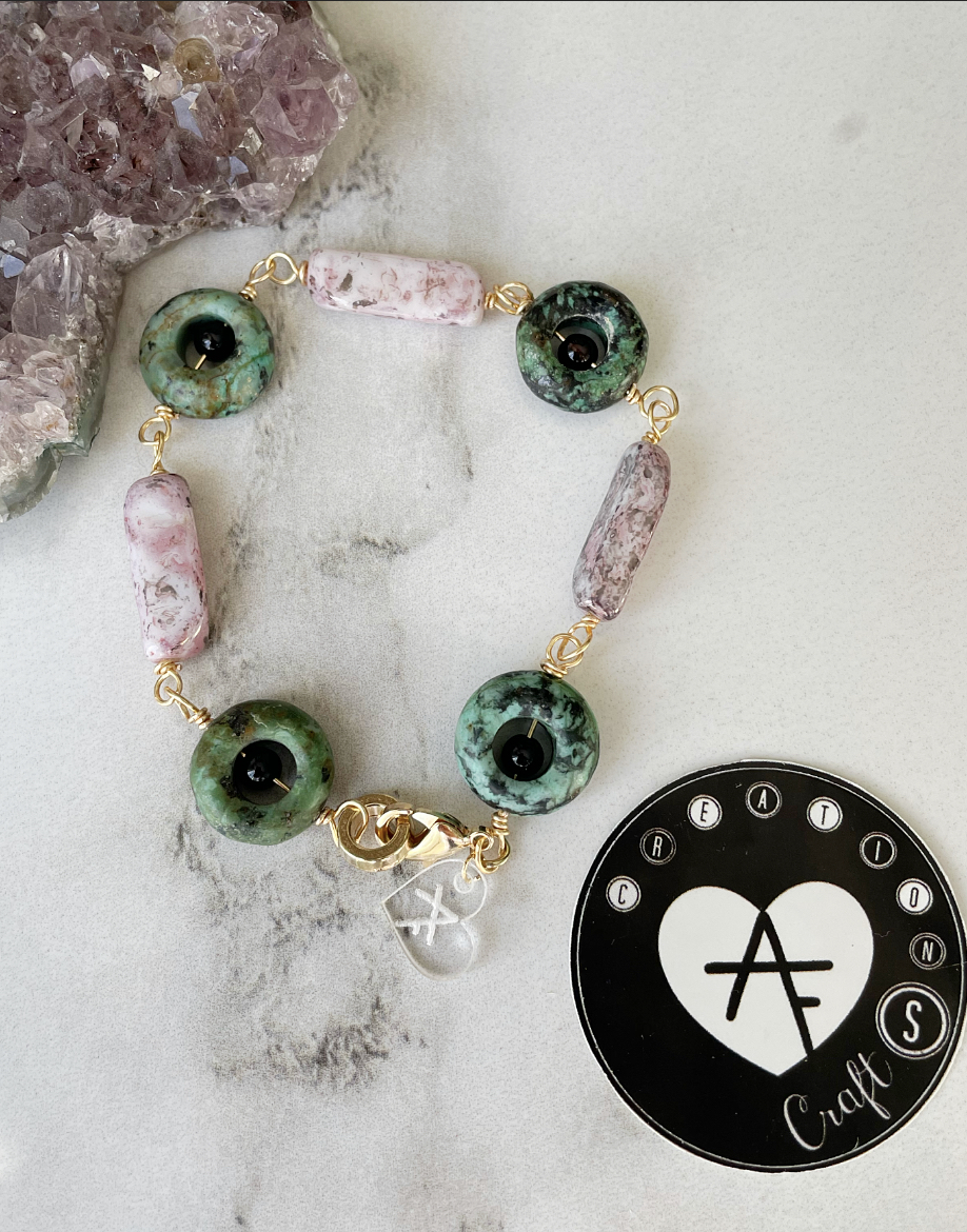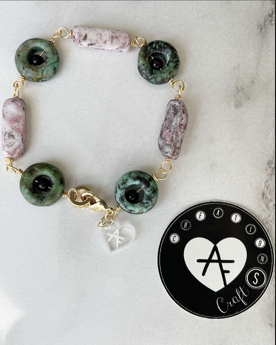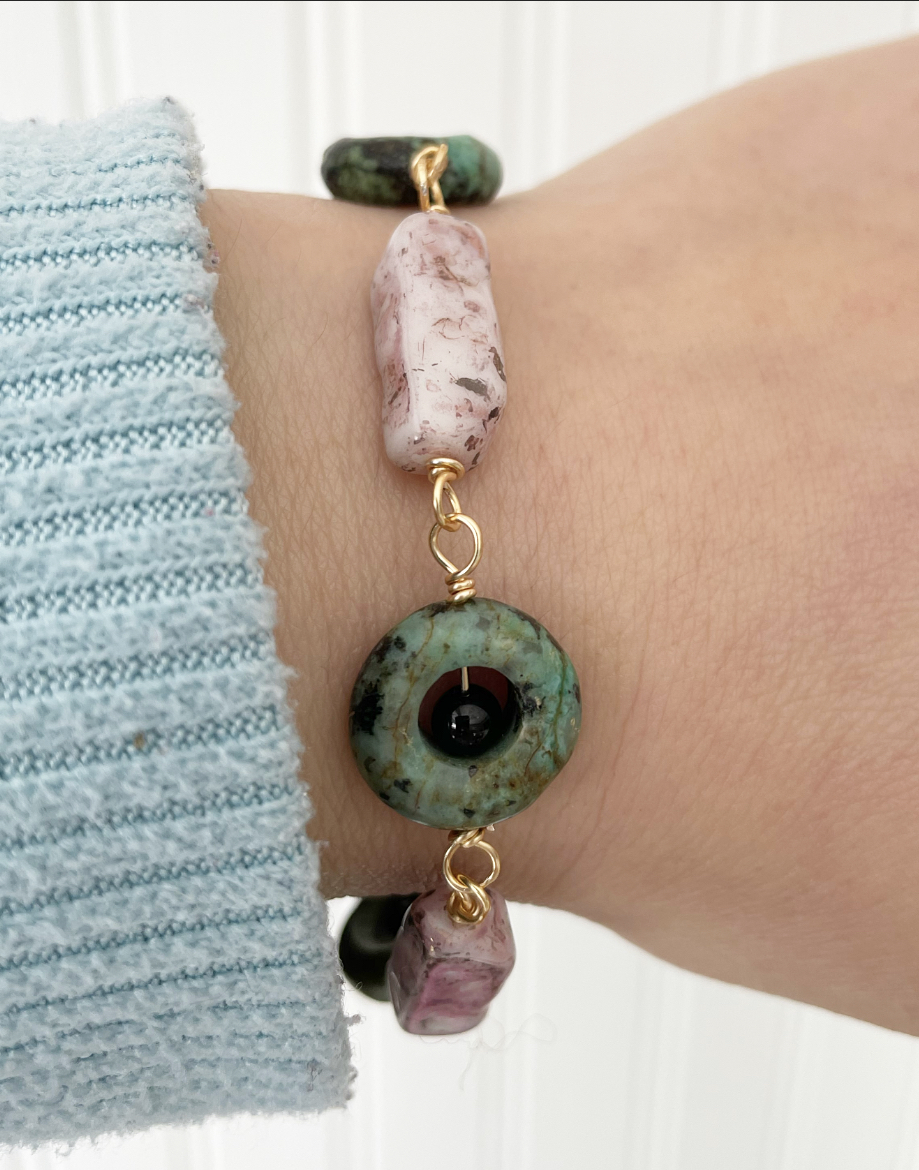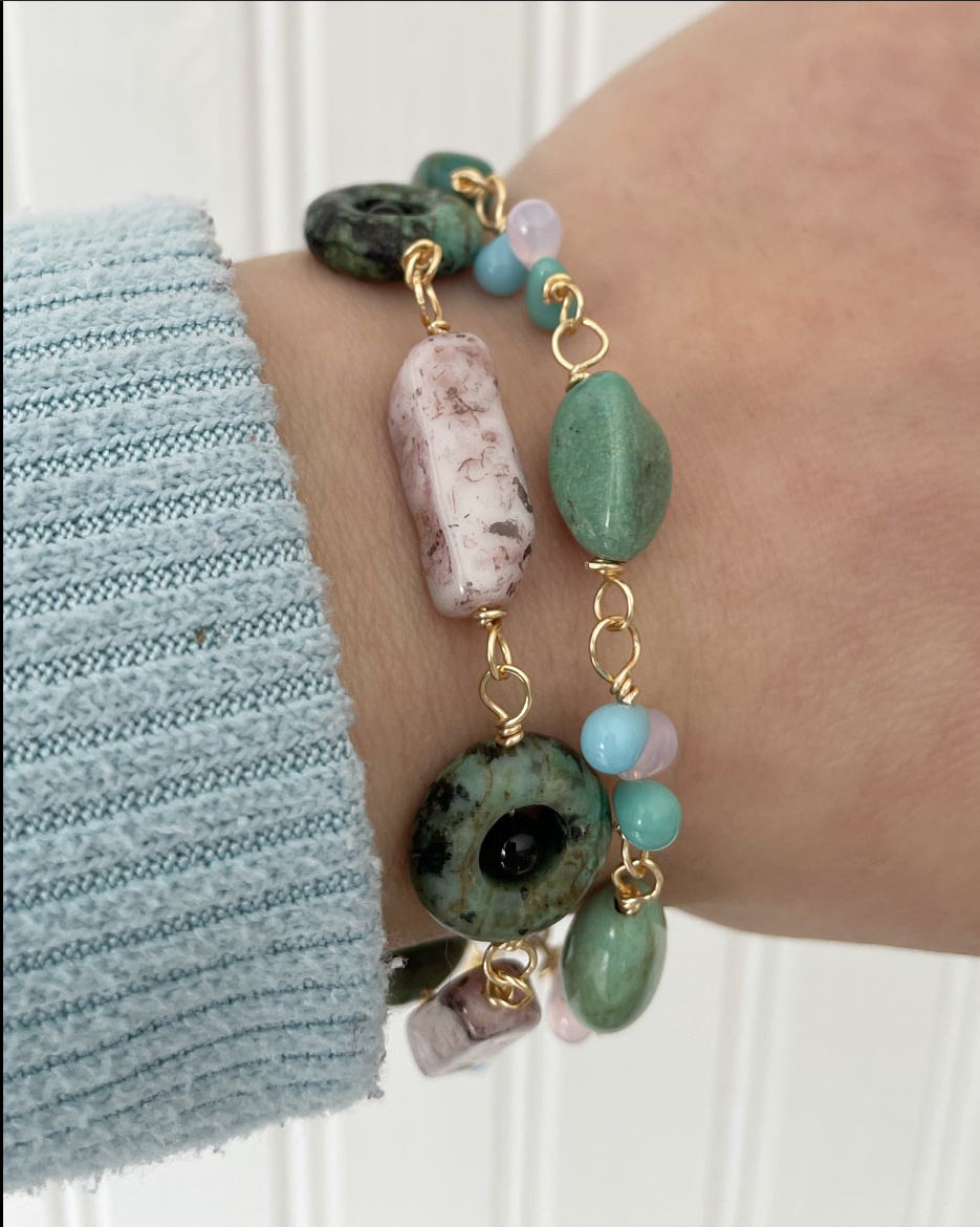 Handmade bracelets with a combination of stones and metals that form unique pieces.