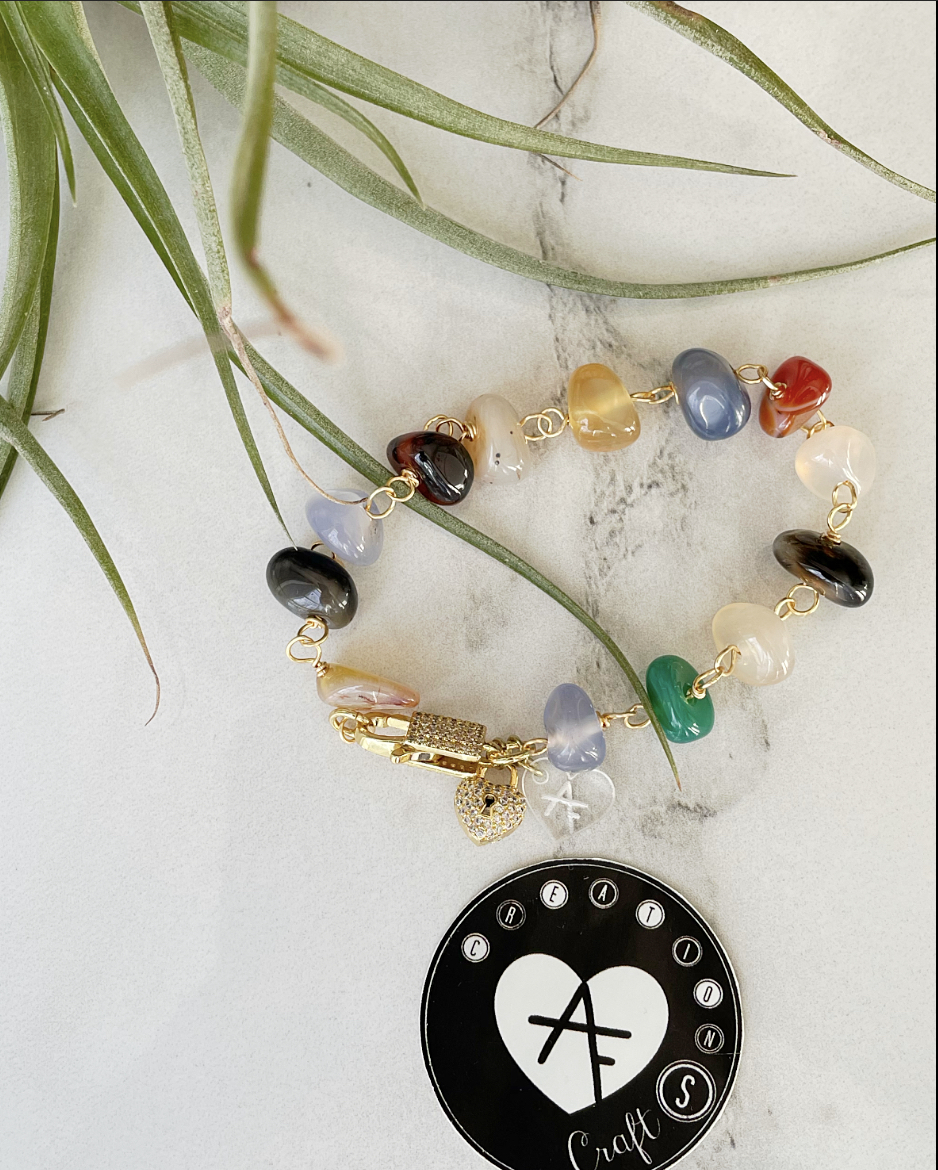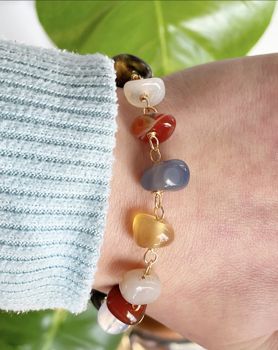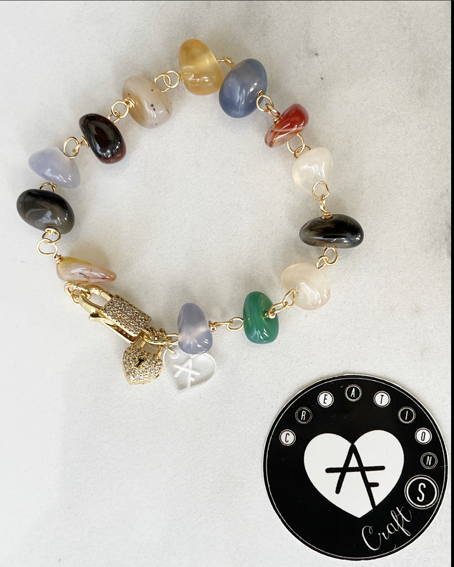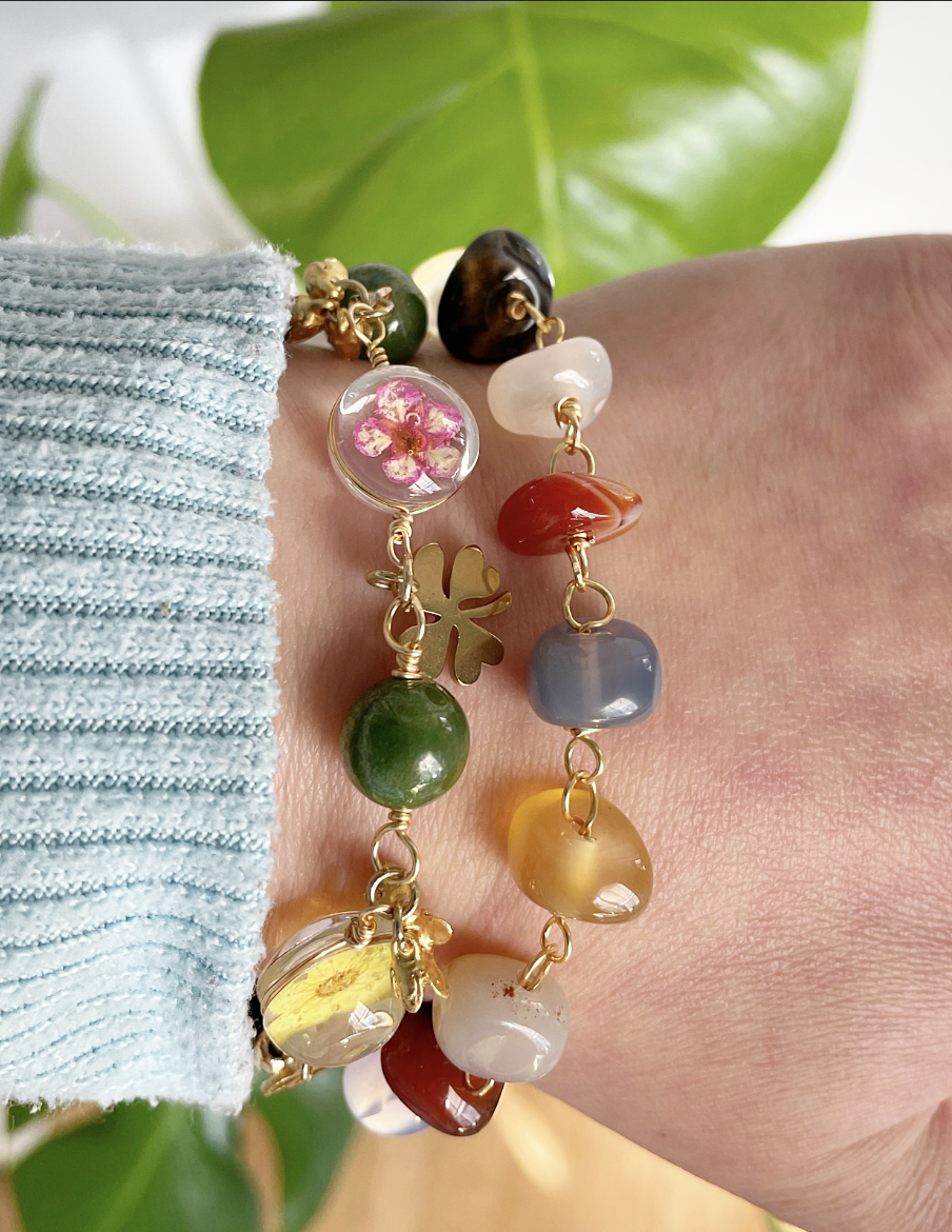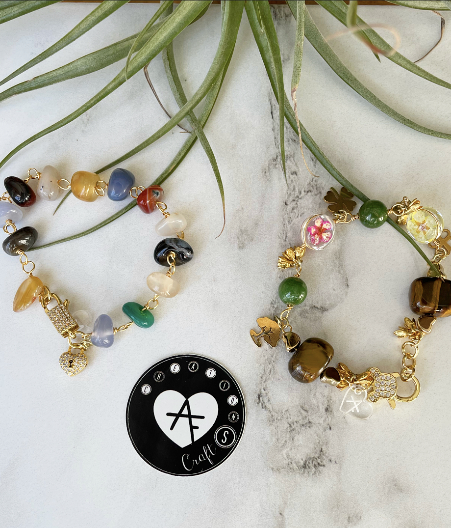 Handmade bracelets with a combination of stones and metals that form unique pieces.
