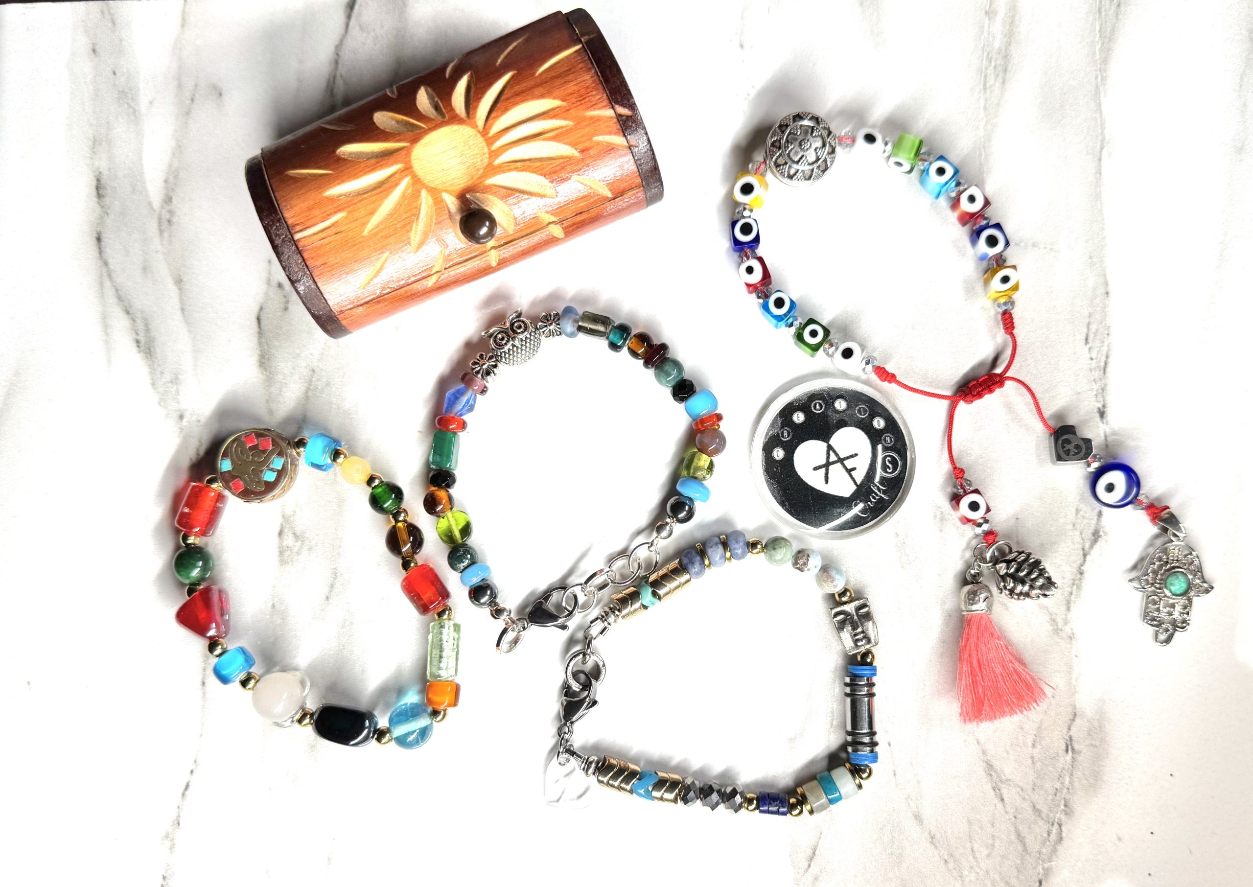 Handmade bracelets with a combination of stones and metals that form unique pieces.
