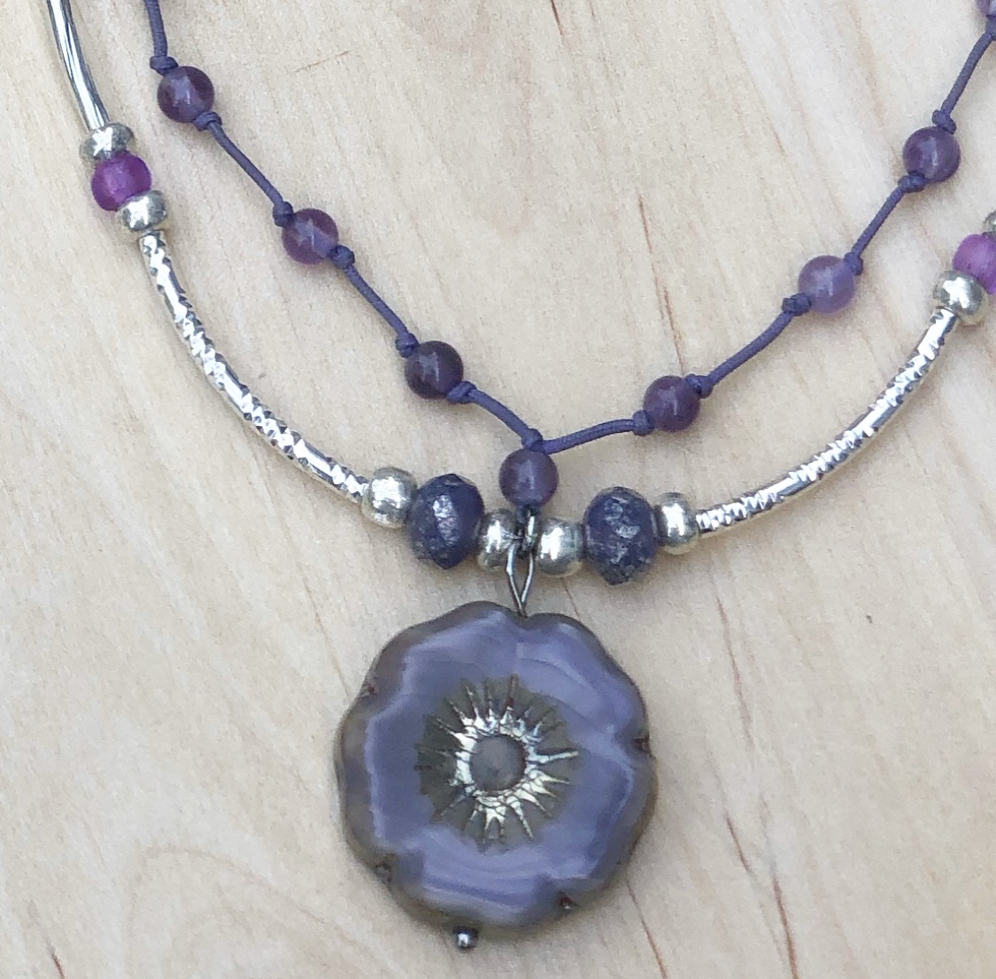 Purple Silver Czech Glass Beads