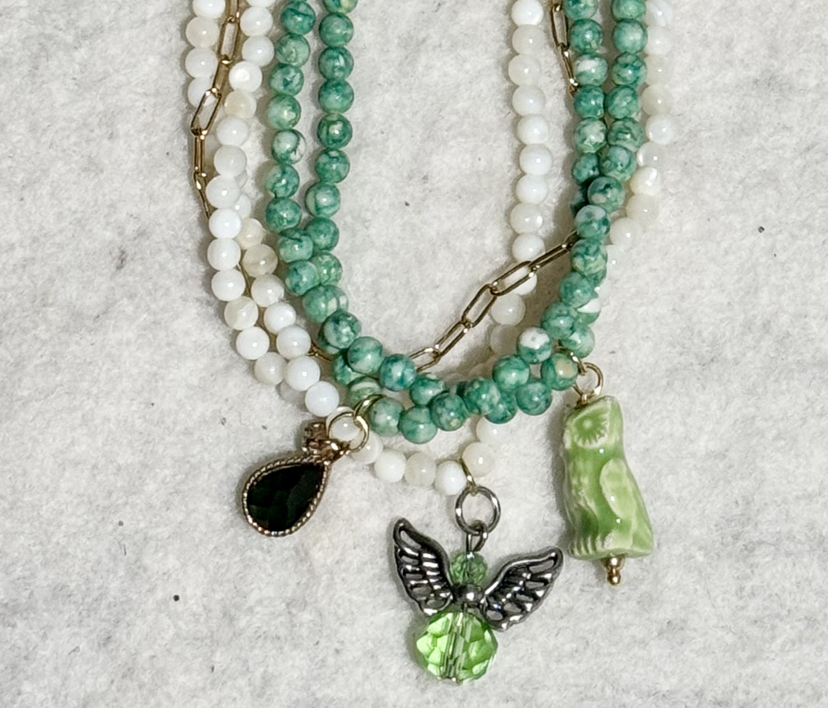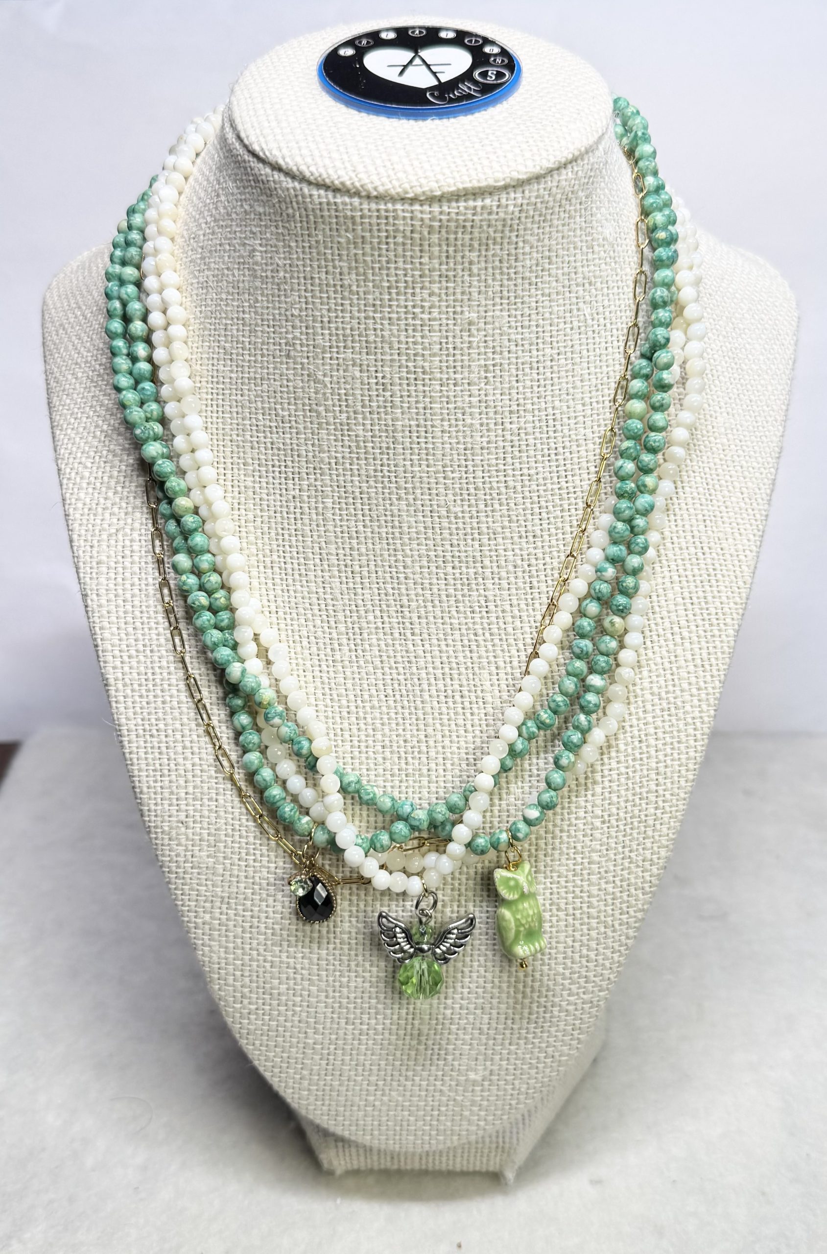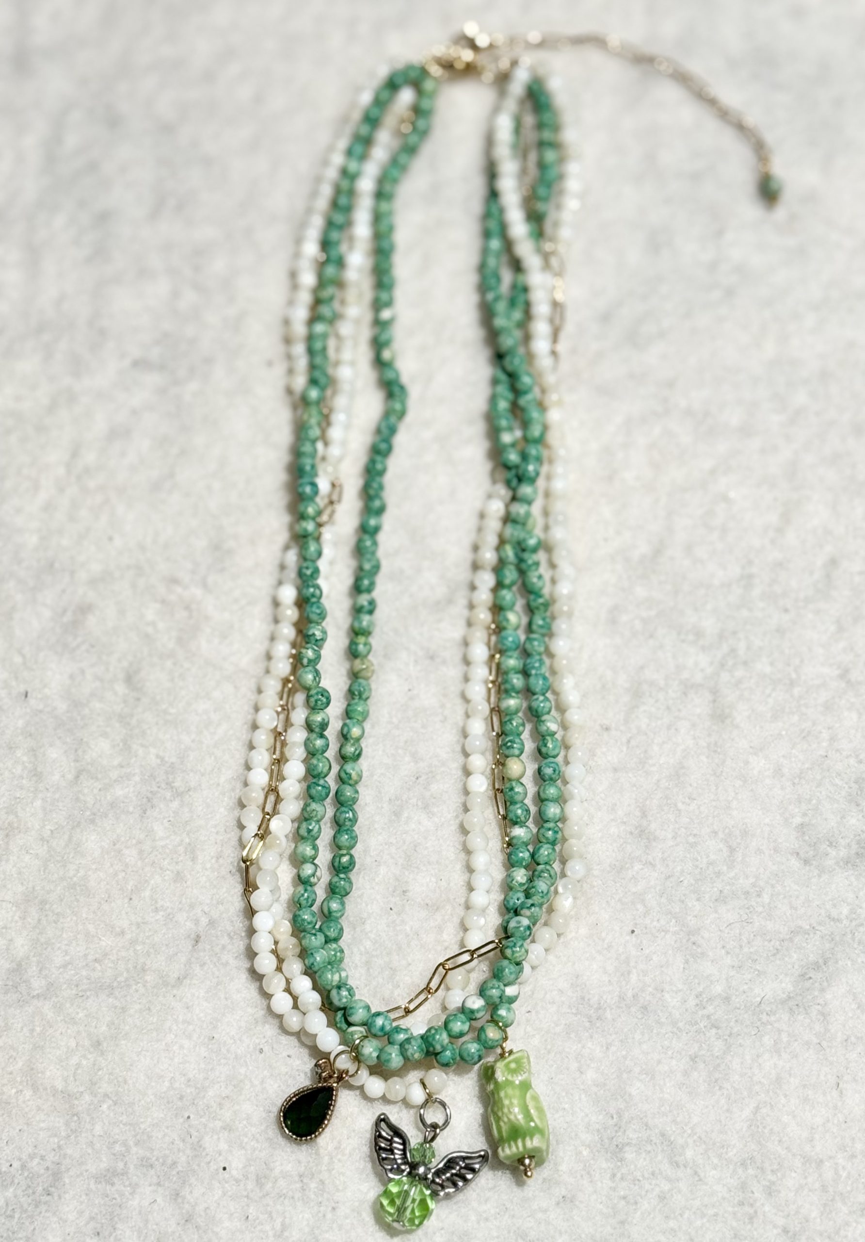 Multi-Layered Green and White Colored Beads