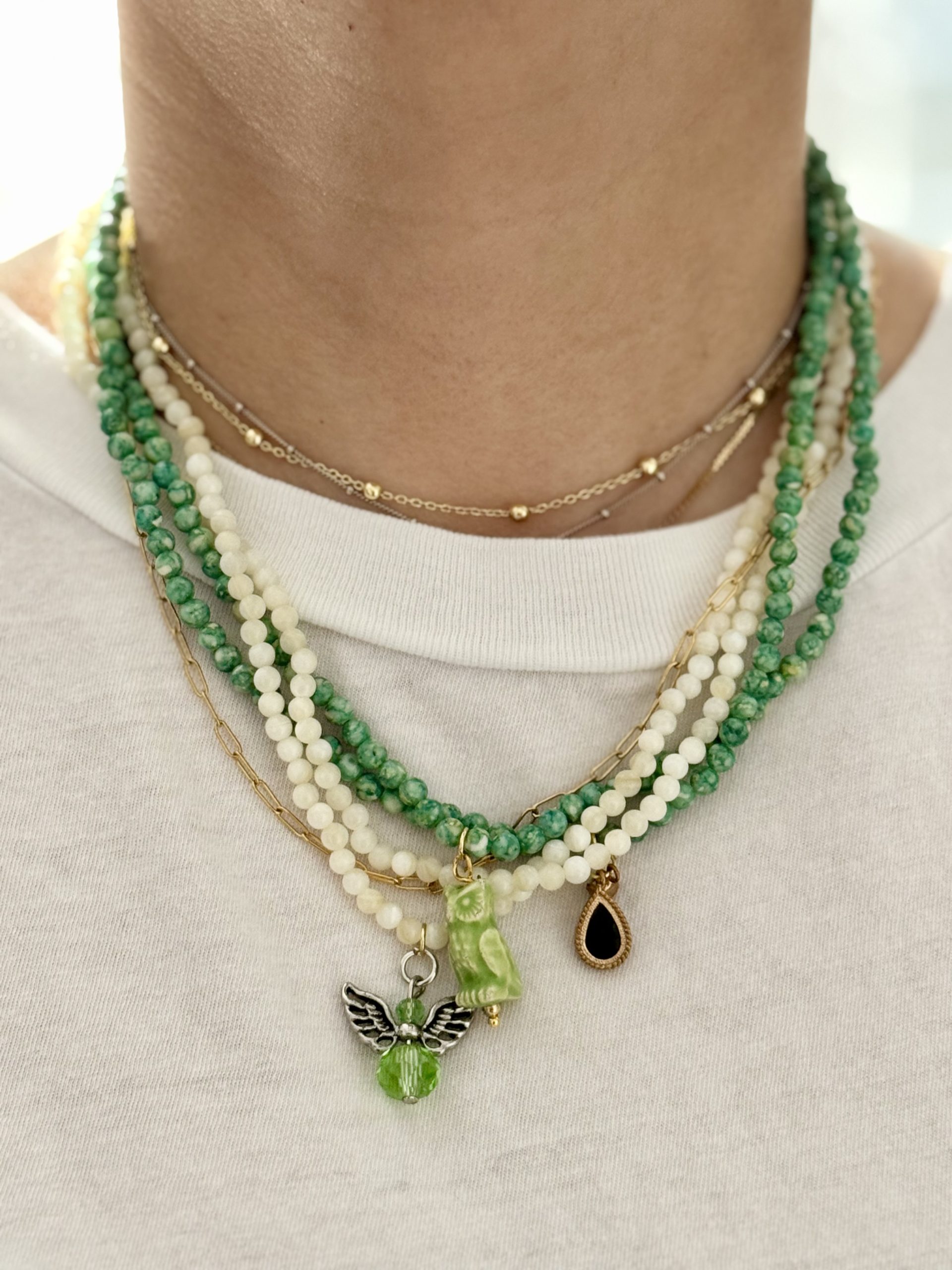 Handmade Necklaces with a combination of stones and metals that form unique pieces.